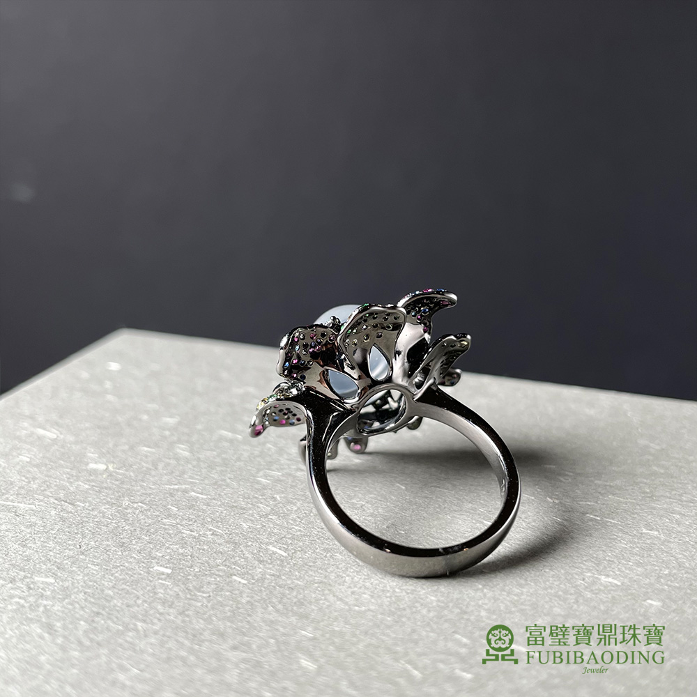 玻璃種蛋面鑲彩色剛玉戒A000971