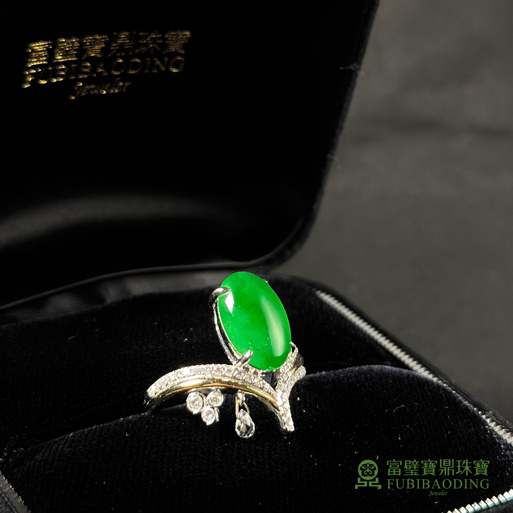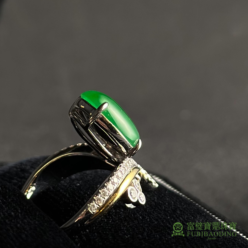 鑲V字綠蛋面戒指