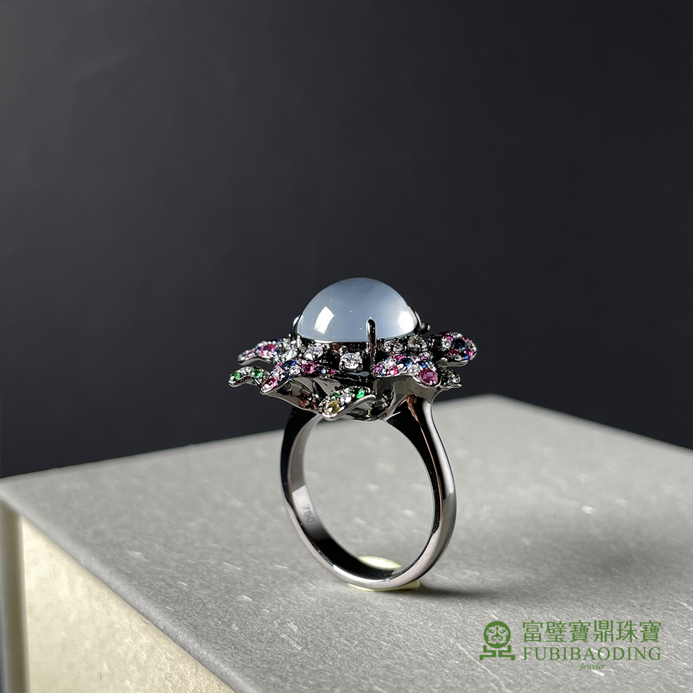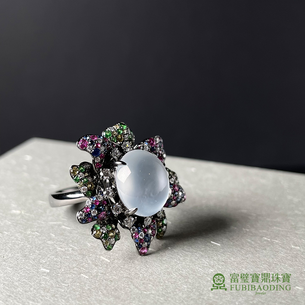 玻璃種蛋面鑲彩色剛玉戒A000971