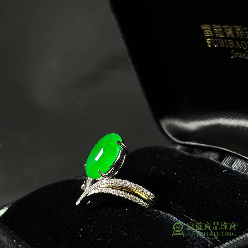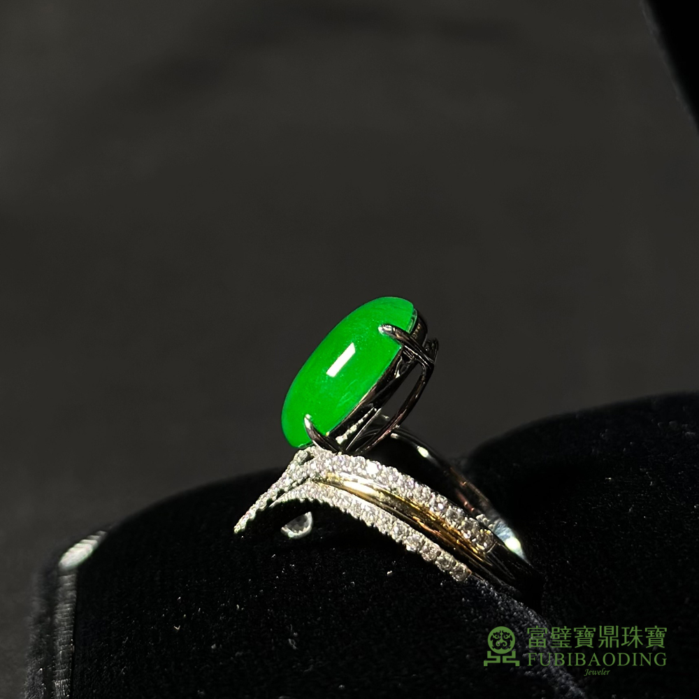 鑲V字綠蛋面戒指